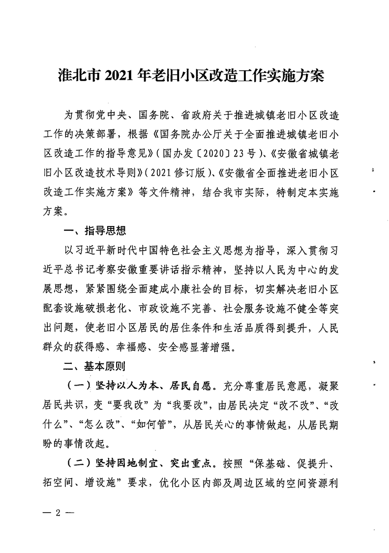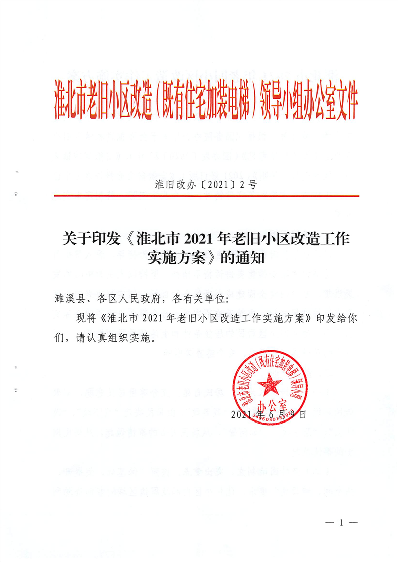 关于印发《淮北市2021年老旧小区改造工作实施方案》的通知 (淮旧改办[2021]2号)