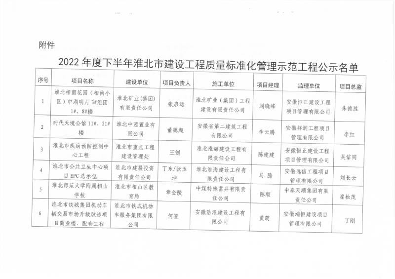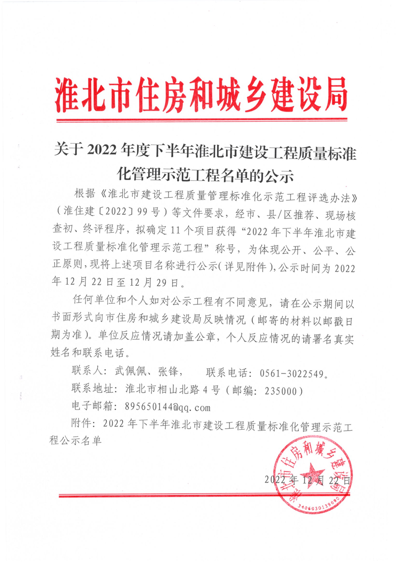 关于2022年度下半年淮北市建设工程质量标准