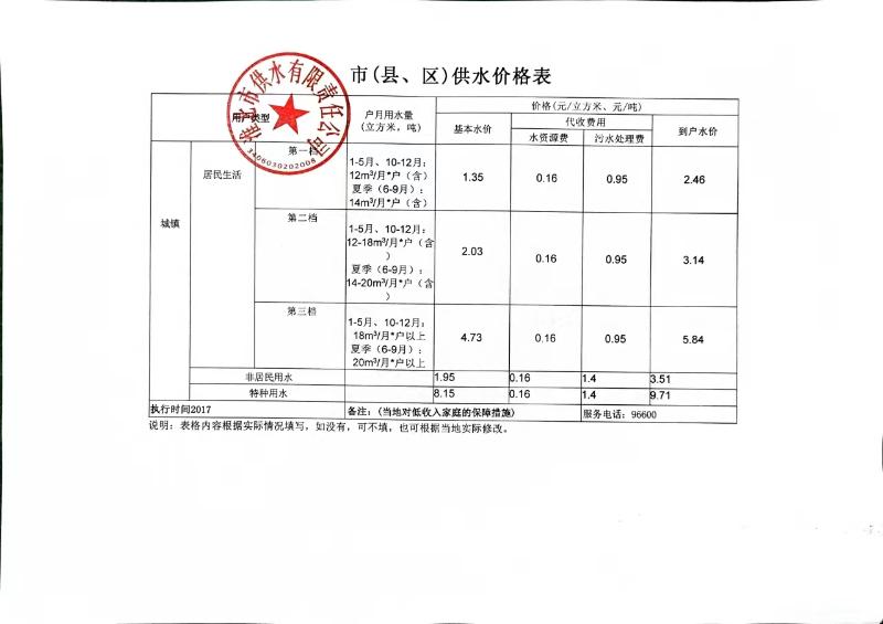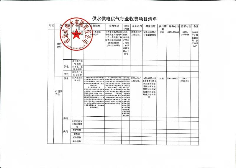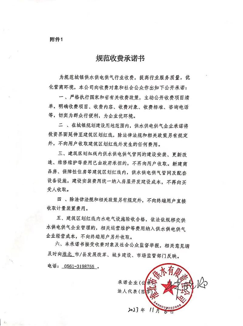 关于我市供水行业规范收费承诺书、收费项目清单、价格表的公示
