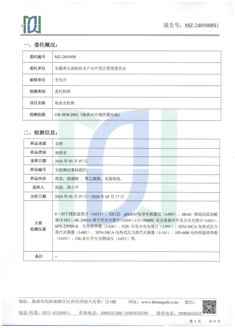 2024年5月龙支河水质检测报告2