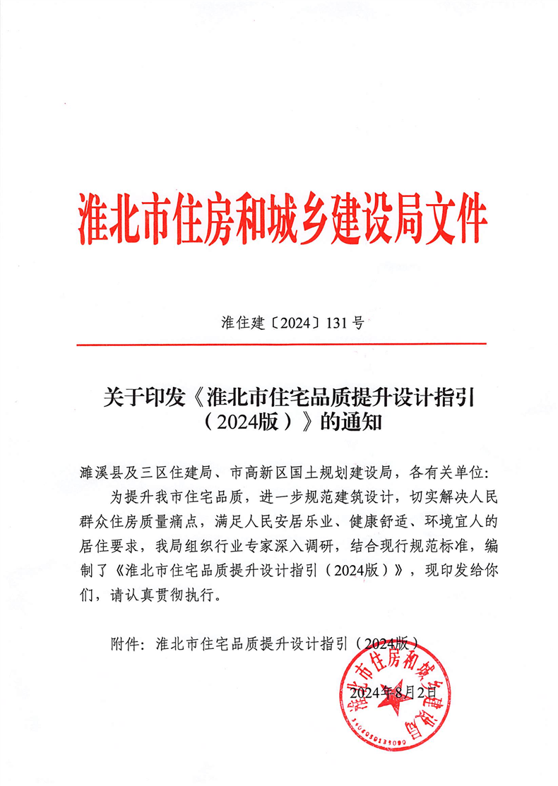 关于印发《淮北市住宅品质提升设计指引(2024版)》的通知
