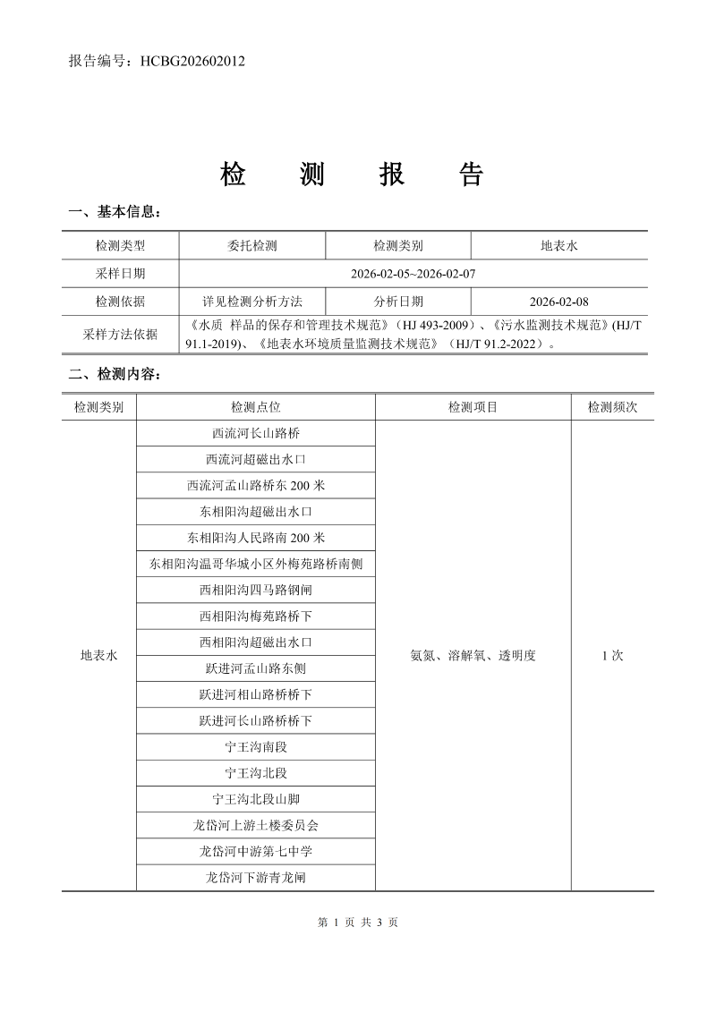 2026年2月份相阳沟、东相阳沟、西流河、东支流、跃进河、龙岱河河道水质检测报告