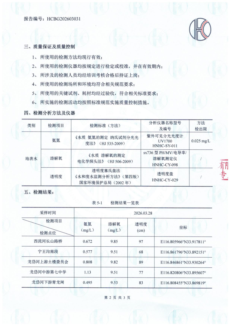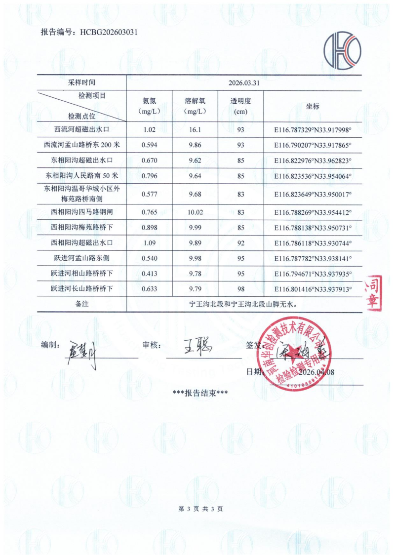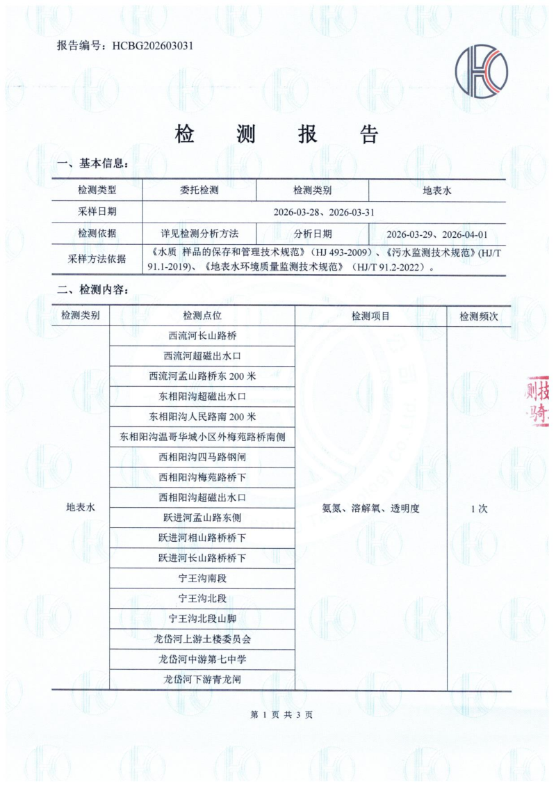 2026年3月份相阳沟、东相阳沟、西流河、东支流、跃进河、龙岱河河道水质检测报告