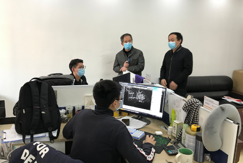 刘吉新一行查看了项目部采取的各项防疫措施与复工情况,重点检查了防疫设施物资储备、外来人员体温检测登记、办公区域消毒杀菌、返淮员工排查跟踪、复工方案等工作落实情况,帮助解决项目部疫情防控和复工遇到的困难。