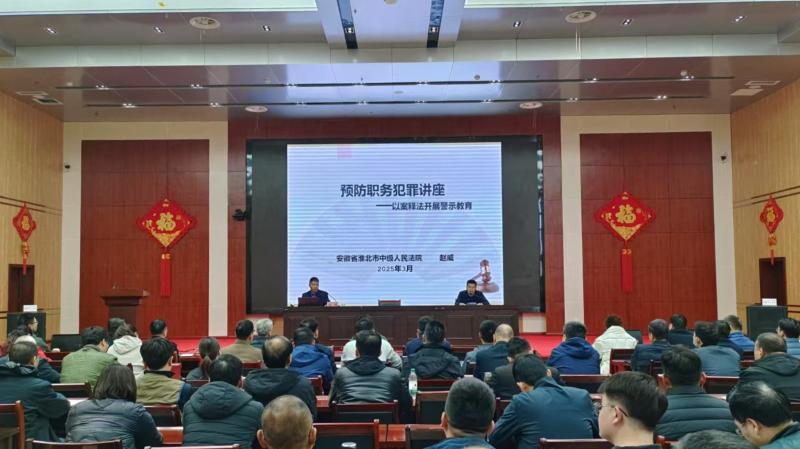 赵威庭长以《预防职务犯罪讲座——以案释法开展警示教育》为题,从党中央反腐败斗争的形势判断、常见职务犯罪解读及警示教育、其他常见犯罪解读及案例介绍三个方面作了预防职务犯罪的专题辅导。讲座结合基层贪腐典型案例,对具有代表性和警示性的职务犯罪案例进行剖析讲解,用身边事教育身边人,提升警示教育效果,提醒大家要守住“底线”、不逾“红线”,深刻汲取反面教训,明白哪些事能做、哪些不能做、应该怎样做,强化底线思维,自觉把党规党纪内化于心、外化于行,筑牢拒腐防变思想防线。