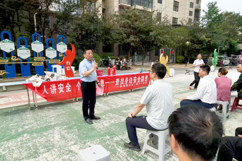 今年6月是第24个全国“安全生产月”。为切实提升住宅小区安全管理和应急处置能力,6月18日,市房管中心副主任薛庆伍带队赴家天下小区,组织开展“人人讲安全、个个会应急——查找身边安全隐患”主题活动,通过“宣讲+实训+演练”模式,筑牢社区安全防线。