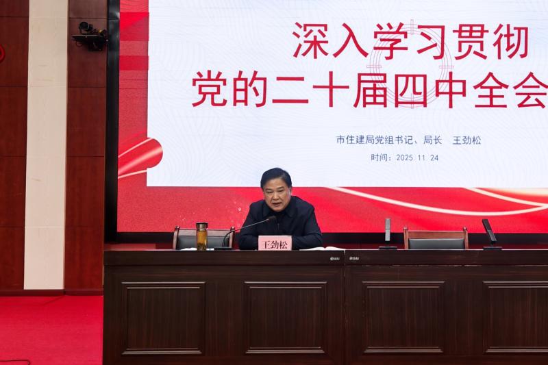 为深入学习贯彻党的二十届四中全会精神,切实把住建系统党员干部的思想和行动统一到党中央决策部署上来,2025年11月24日上午,市住房城乡建设局党组书记、局长王劲松开展以“深入学习贯彻党的二十届四中全会精神”为题的专题宣讲,全局各基层党组织书记、机关党员干部以及局属单位科级及年轻干部代表参加。