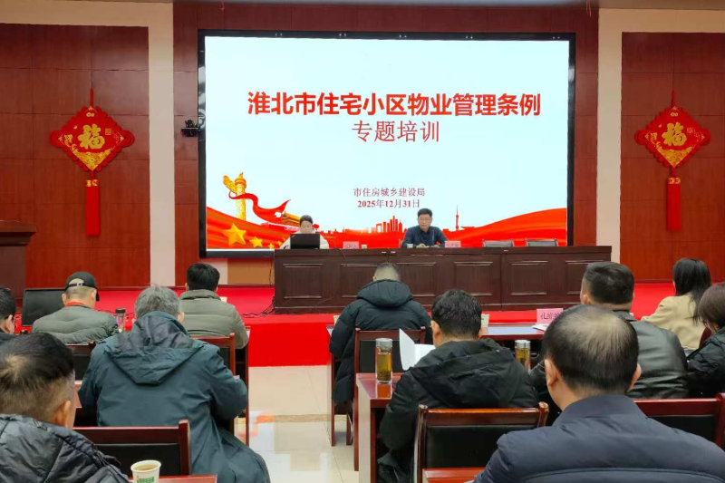 为推动《淮北市住宅小区物业管理条例》(以下简称《条例》)落地落实,市住房城乡建设局于12月31日下午举办《条例》专题培训。局党组成员、副局长孔维维主持会议,县区住建部门、街道(镇)、居(村)委会物业管理人员,市物业服务行业协会负责人及物业服务企业代表等80余人参加培训。
