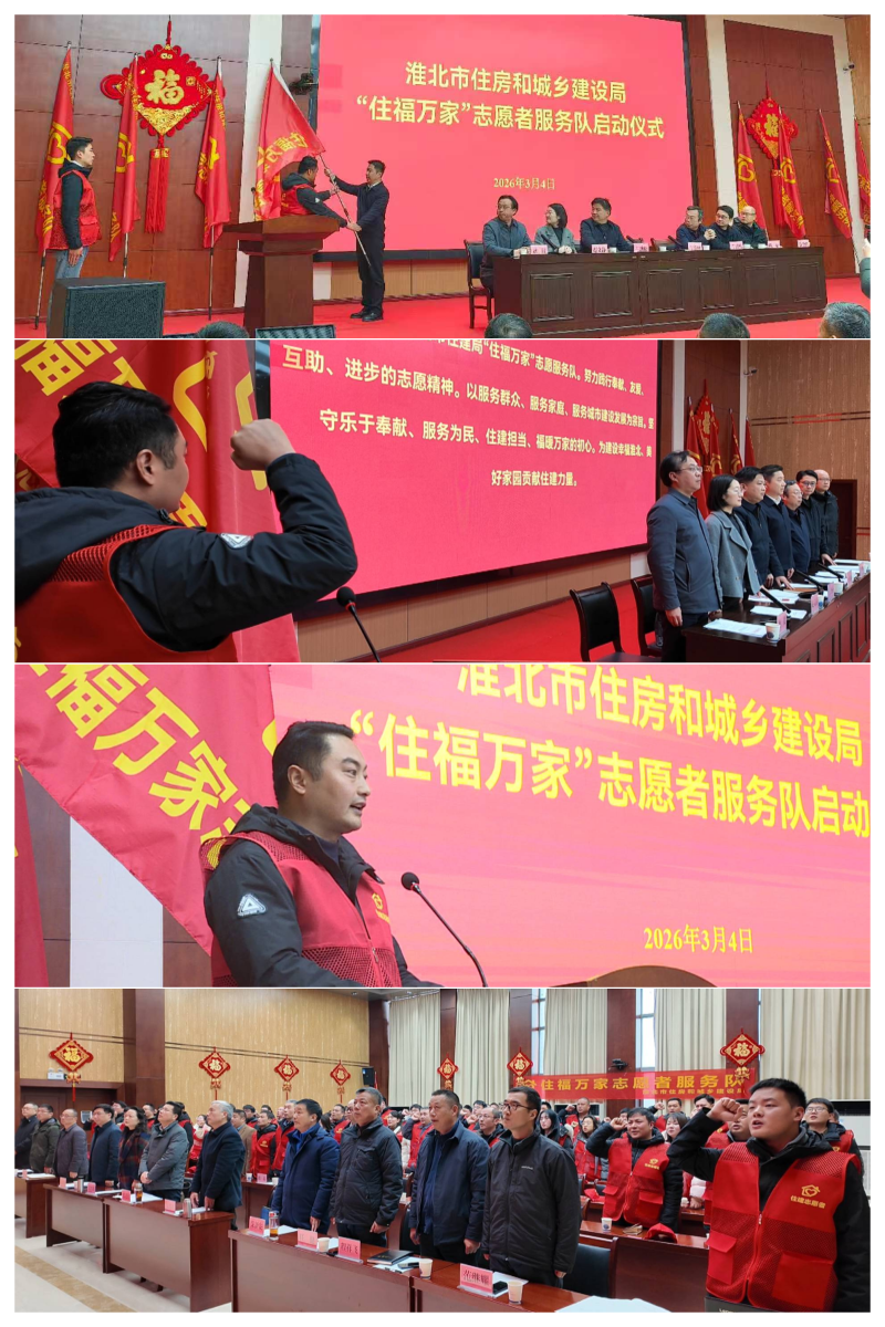 局党组成员、副局长耿晨宣读《关于成立淮北市住房和城乡建设局“住福万家”志愿者服务队的通知》《淮北市住房和城乡建设局“住福万家”志愿者服务队运行管理机制》,明确服务队组织架构、服务宗旨及运行管理机制。“住福万家”志愿者服务队立足住建职能、聚焦民生服务,下设11个分队,旨在推动志愿服务与住建业务深度融合。