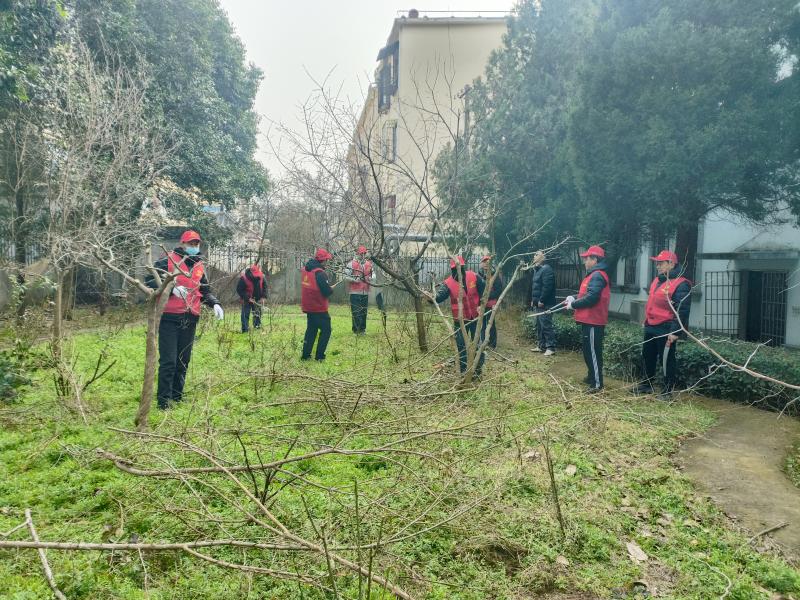 活动中,志愿者们充分发挥园林专业优势,对监测站园区内的石楠、女贞、月季、桂花、腊梅等各类苗木进行了科学修剪和精细化养护。大家手持修剪工具,按照“因树施策、先疏后截”的原则,精心清理枯死枝、病弱枝和交叉重叠枝,并对绿篱和灌木进行整形修剪。经过志愿者的辛勤劳动,园区绿化面貌焕然一新,不仅消除了干枯枝带来的安全隐患,也进一步提升了科普基地景观效果。