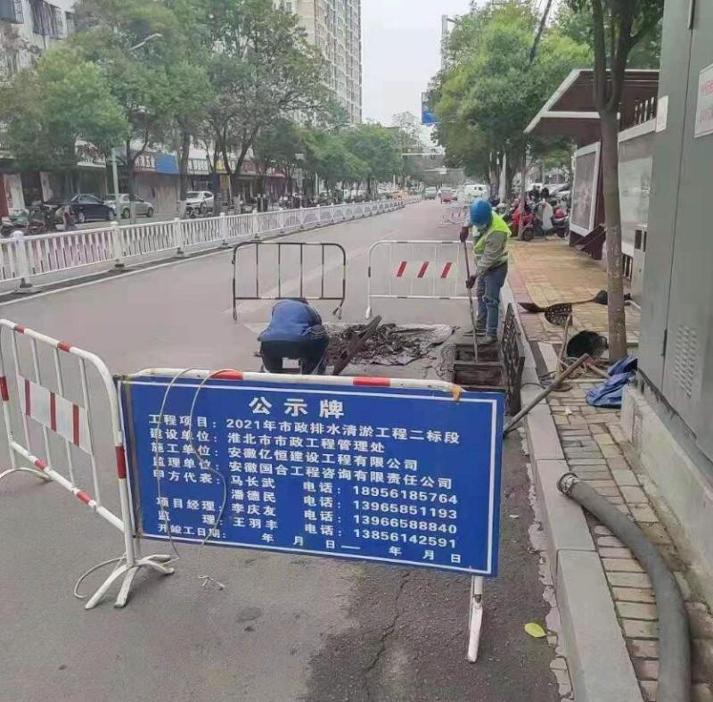 目前鹰山路(铁路桥南-南黎路)、濉溪路(海宫路-濉溪路铁路桥)、孟山路(铁路桥南-人民路)、沱河路(相山路-长山路)、人民路(相山路-长山路)、淮海路(电厂-东岗楼立交桥)、古城路(长山路-濉溪路)、长山路(淮海路-古城路)、孟山路(淮海路-铁路桥北)、相山路(淮海路-铁路桥北)已清理完成,预计清淤项目于五月底竣工。在此提醒行经施工路段的市民,请谨慎驾驶、安全通行。因施工而造成的不便请予谅解。
