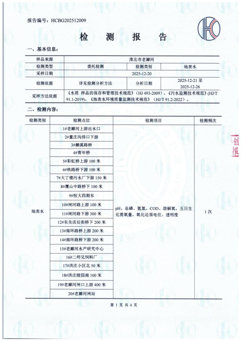 2025年第四季度老濉河水质检测报告