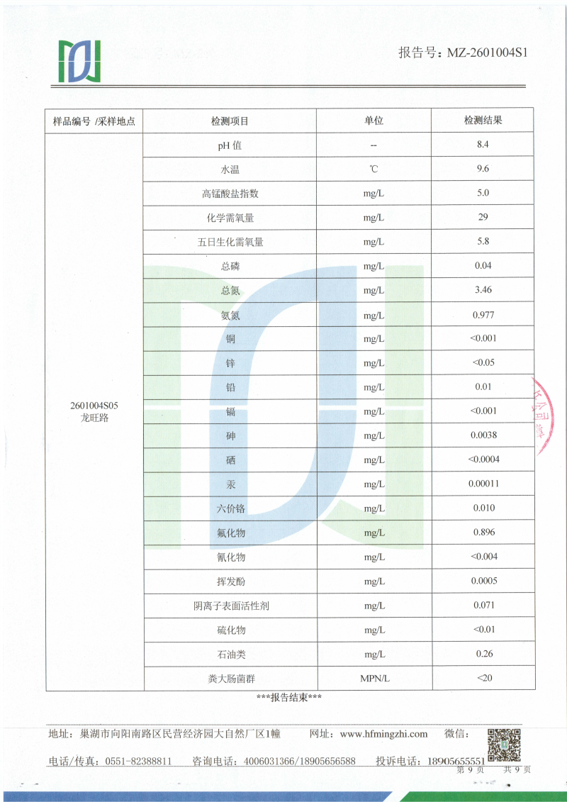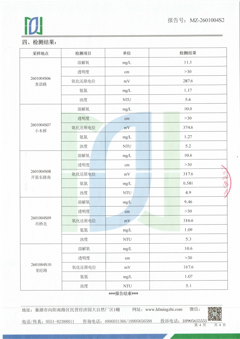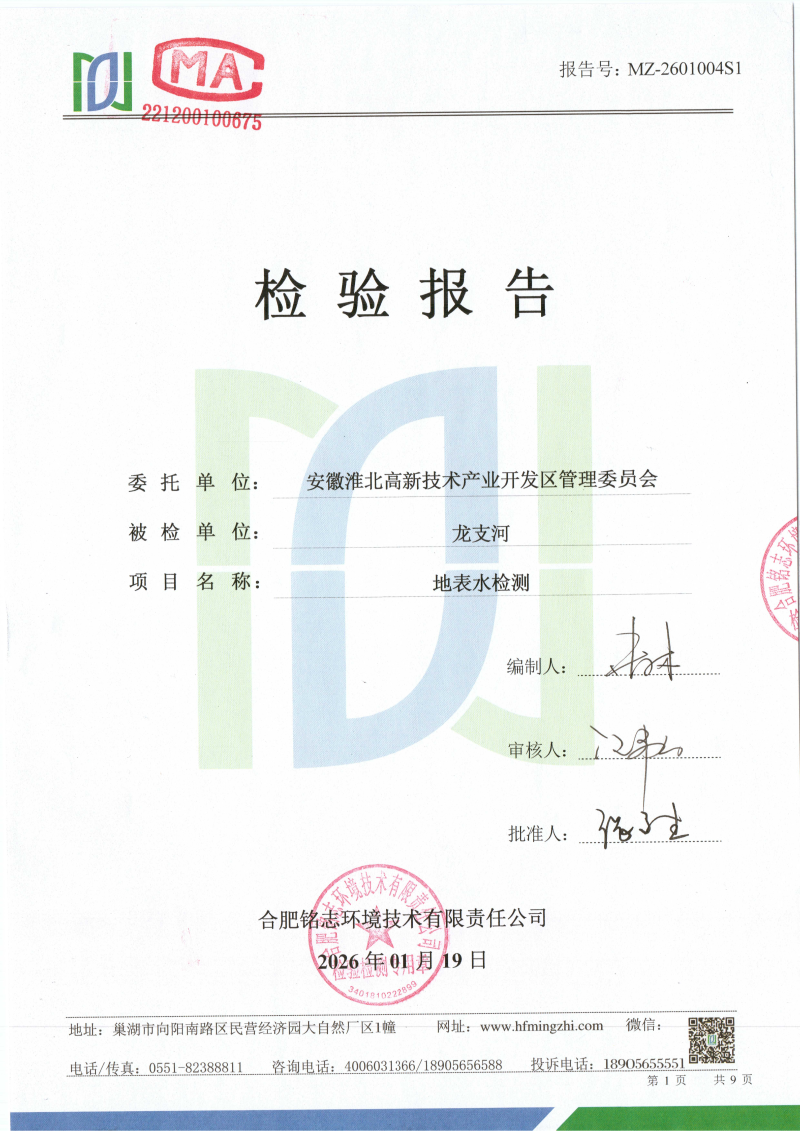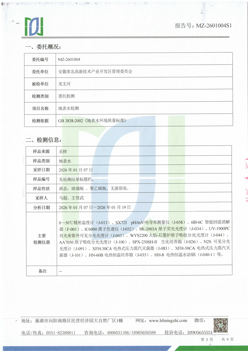 2026年1月份龙支河水质检测报告