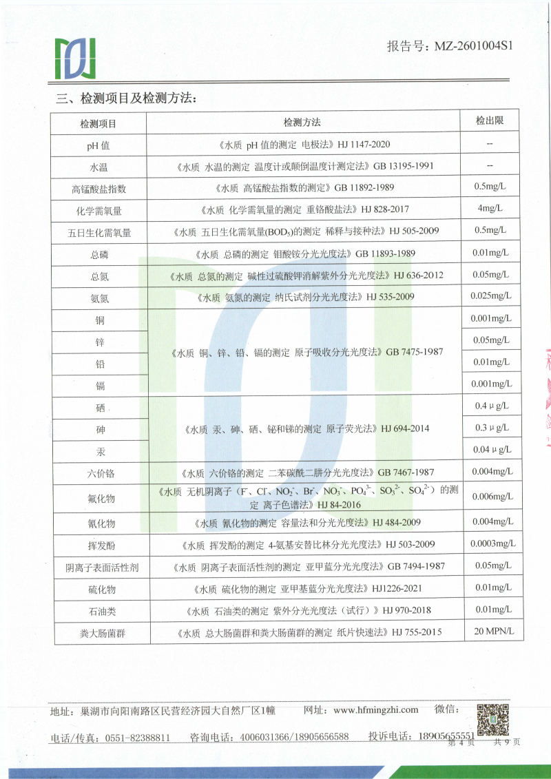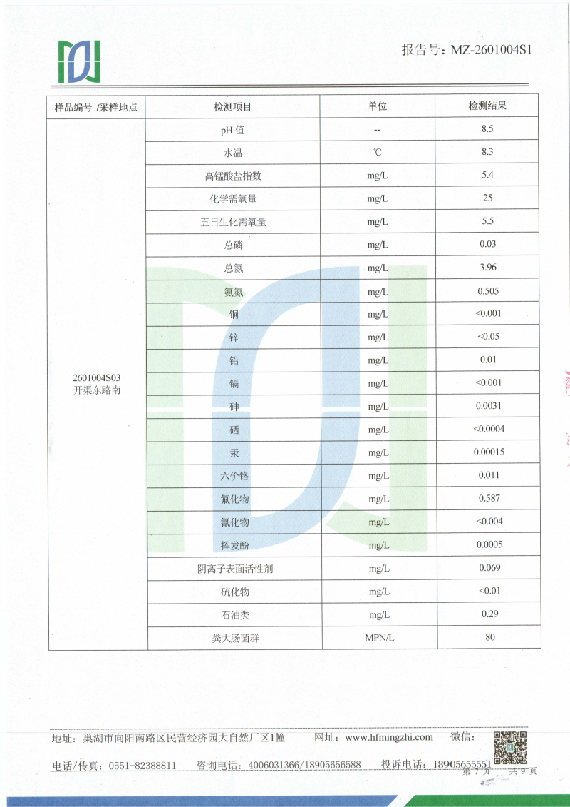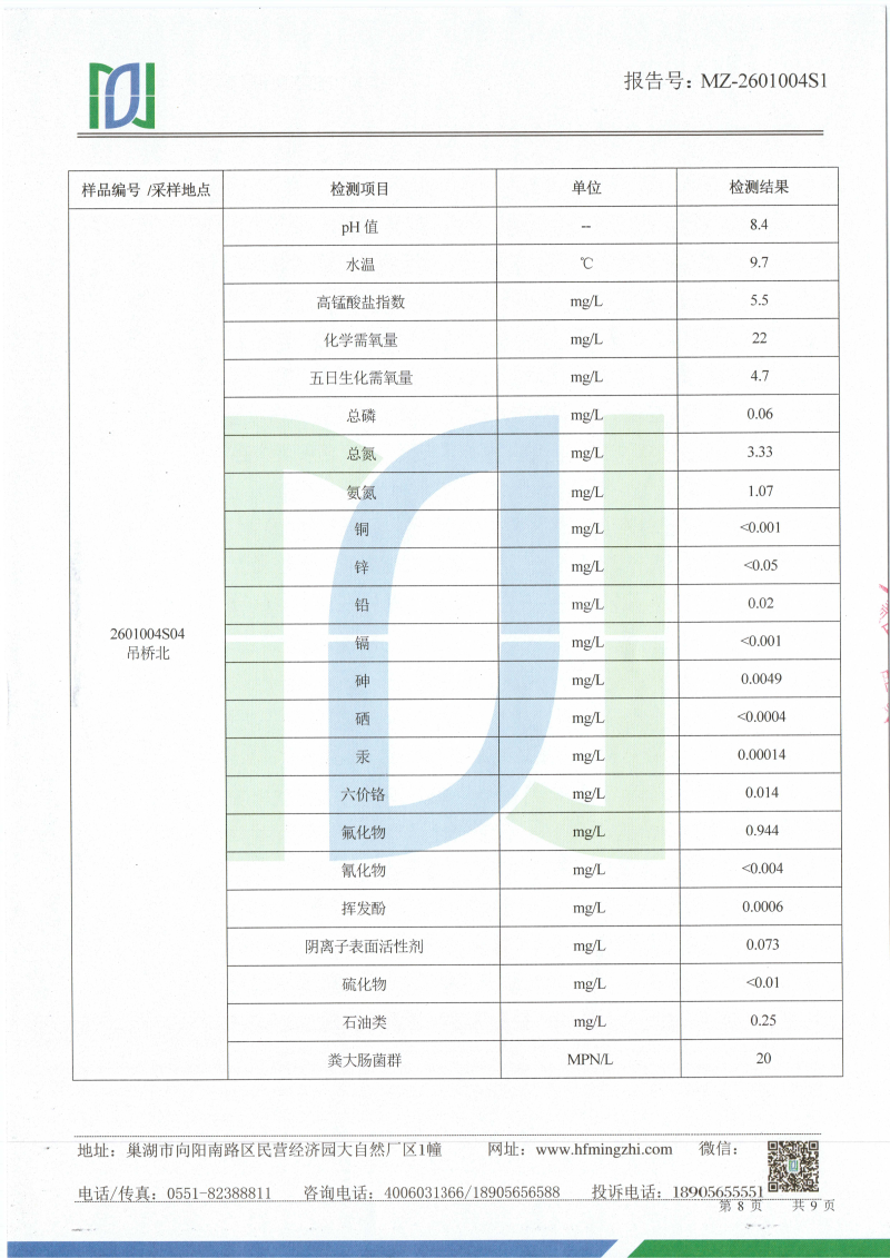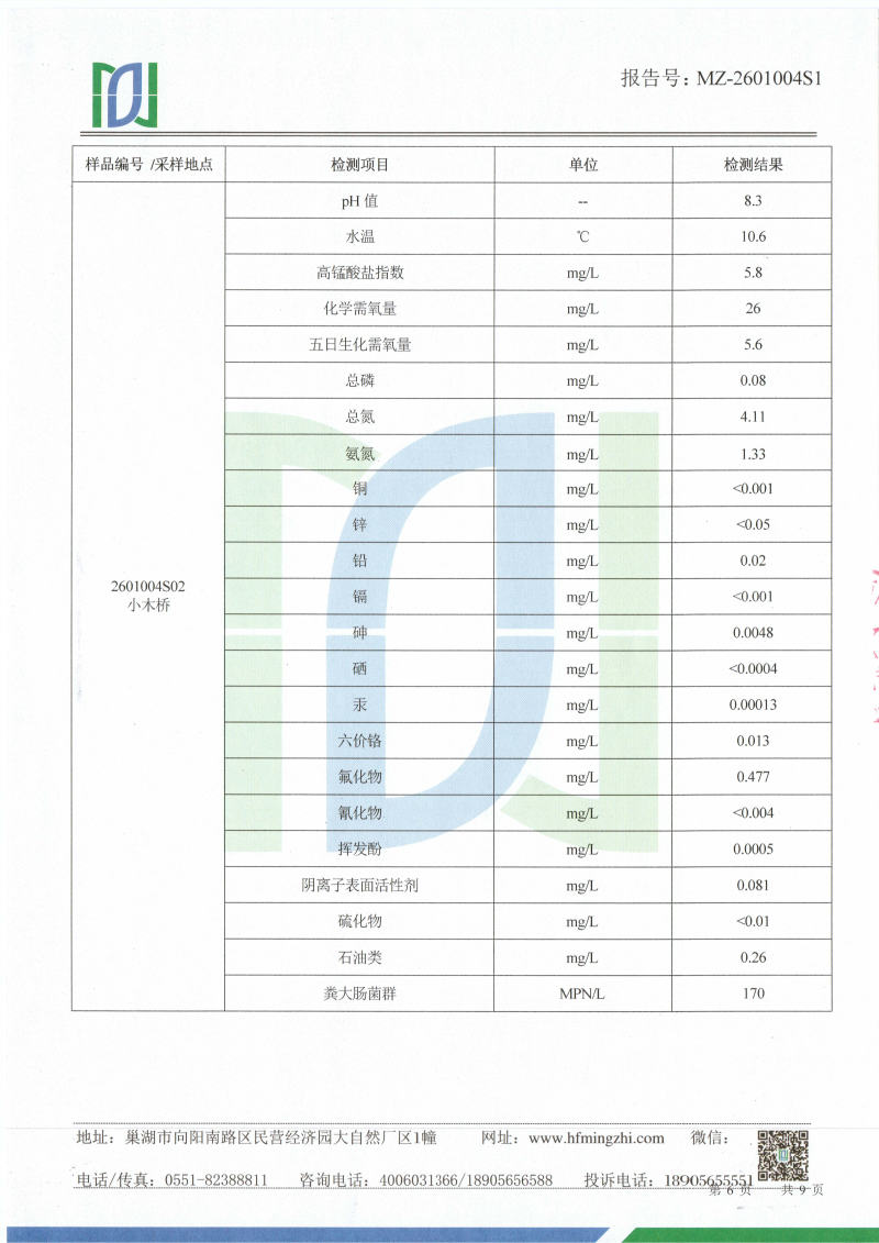 2026年1月份龙支河水质检测报告