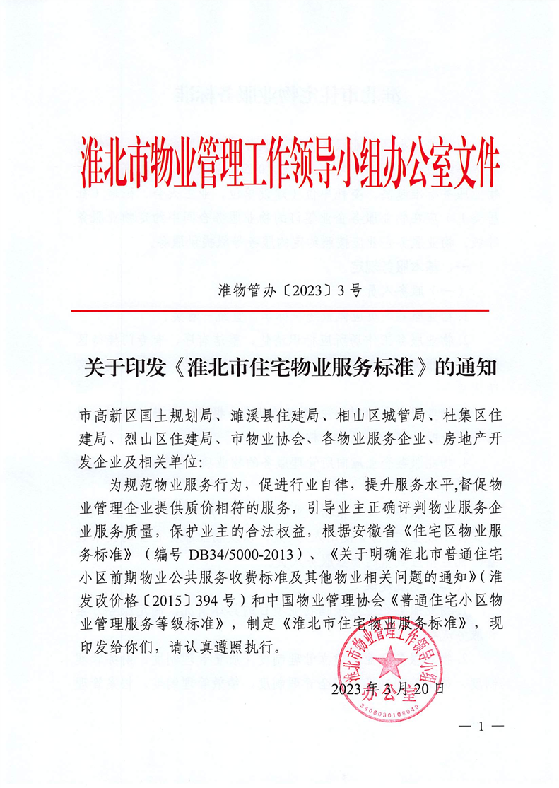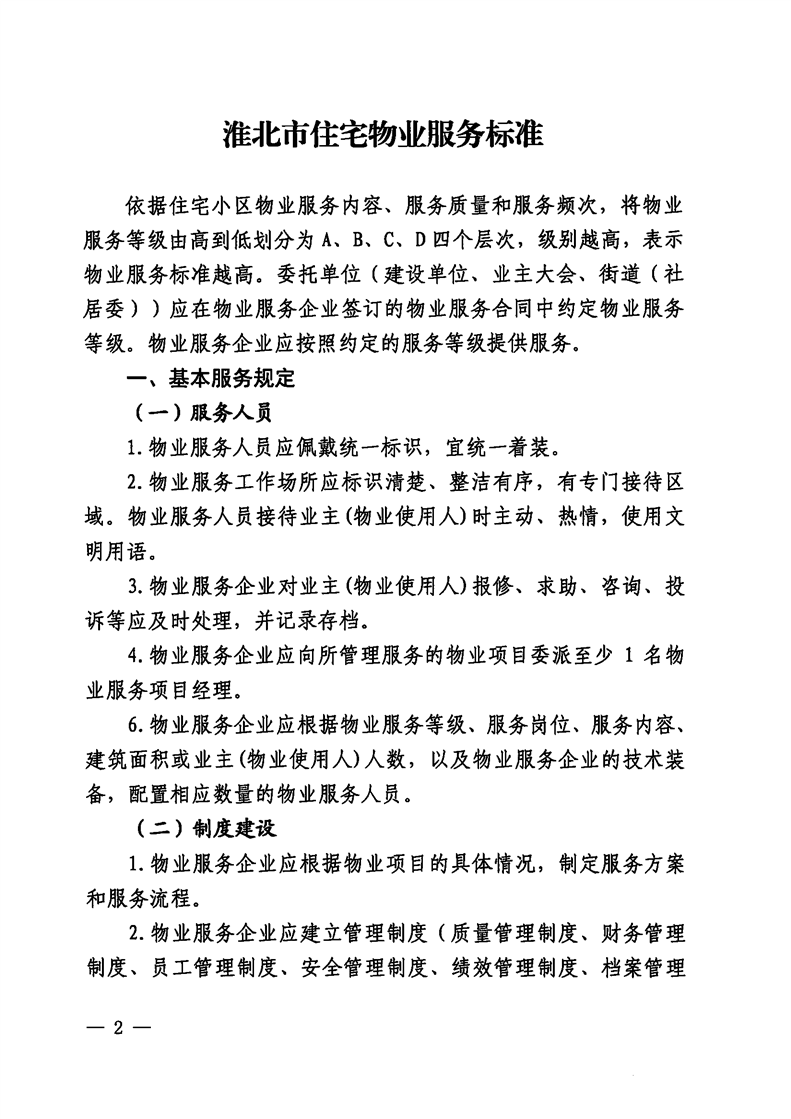 【通知公告】关于印发《淮北市住宅物业服务标准》的通知