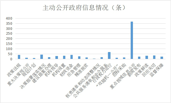 2019年,我局对本年度公开的政府信息进行了认真的梳理和编目,截至12月31日,新增主动公开政府信息1050条,累计主动公开政府信息达6796条。其中包括:政策法规41条,重大决策预公开11条,规划计划9条,决策部署落实情况44条,建议提案办理18条,机构领导28条,机构设置32条,财政资金41条,应急管理25条,精准脱贫15条,权责清单和动态调整情况4条,公共服务清单和中介服务16条,行政权力运行68条,“双随机、一公开”11条,招标采购15条,重点领域信息公开368条,新闻发布22条,政策解读32条,回应关切35条,监督保障24条。